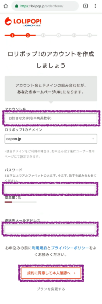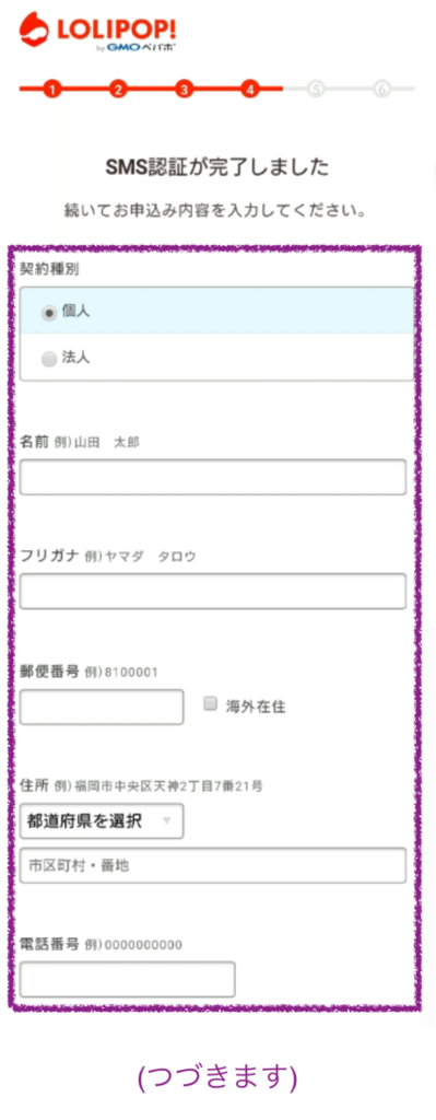 まずはレンタルサーバの契約に必要な基本情報を登録します。