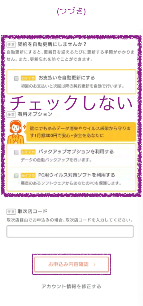 レンタルサーバの契約に必要な追加情報を登録してください。
