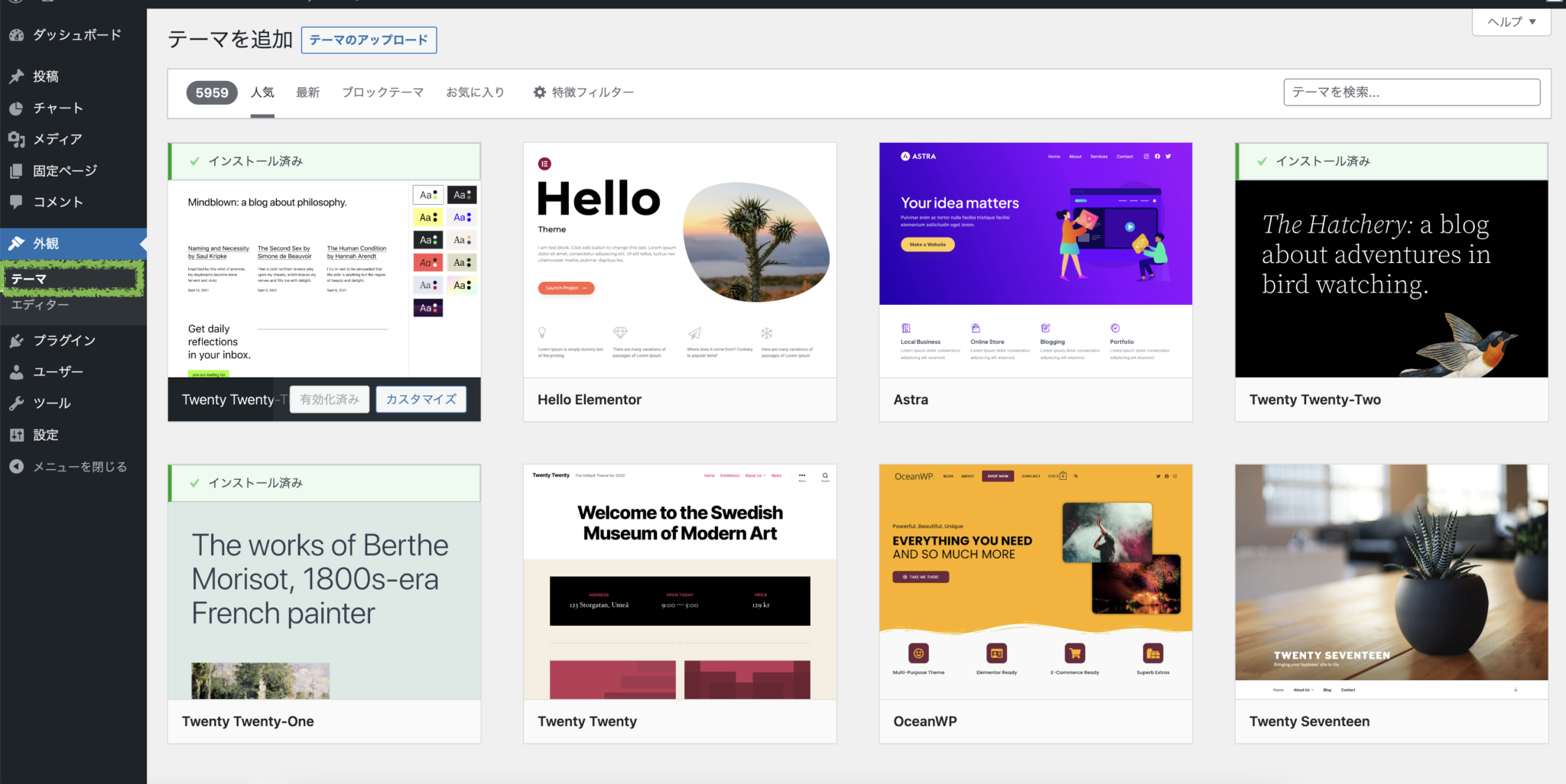 WordPress 標準のテーマや、日本人が制作しているテーマもあります。