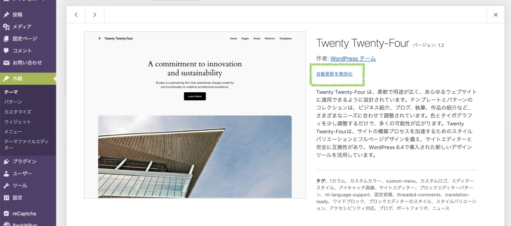現在は標準で自動アップデートされるようになっていますが、プラグインやテーマは個別に設定する必要があります。