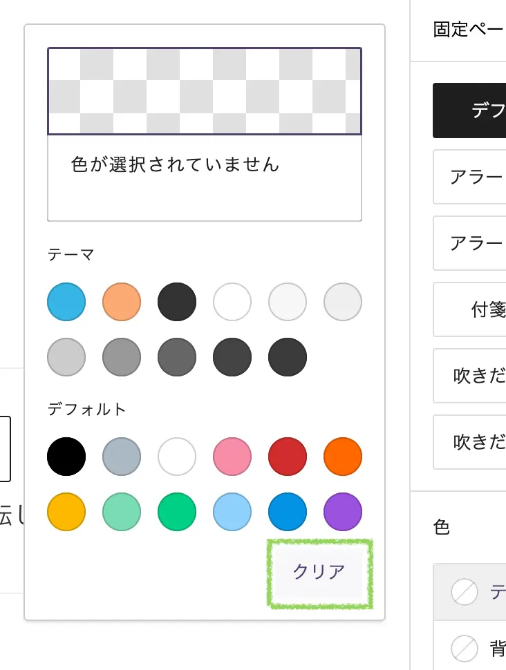 - 段落ブロックのテキストカラーを画面右の設定パネルから変える(テーマから選択ではなくRGB指定)