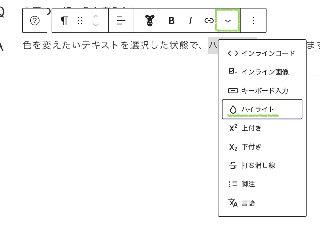 色を変えたいテキストを選択した状態で、ハイライトで変更できます!