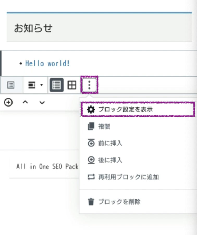 「︙」アイコンを押して「ブロック設定を表示」へ進みます。