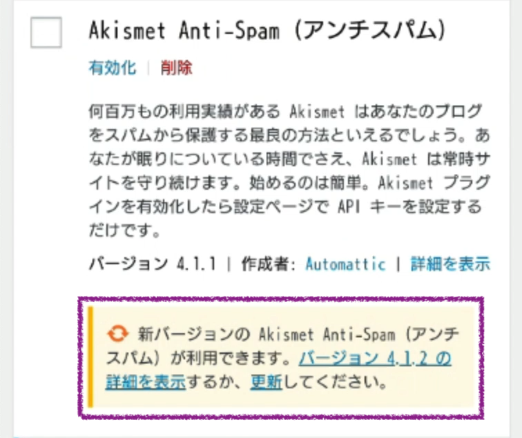 プラグインはすべて自動更新を有効にしておきましょう。使用していないものでも、セキュリティホールの内容によっては悪用される場合があります。不要なプラグインは削除するか、自動更新を有効にしてください。